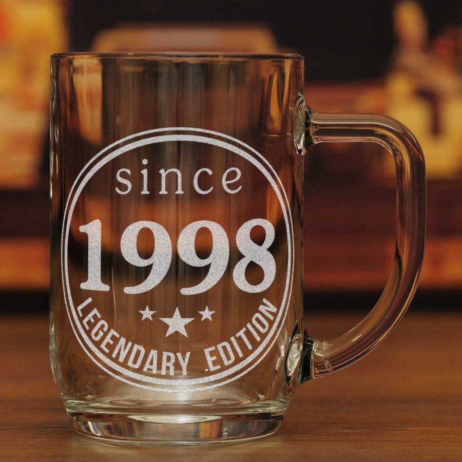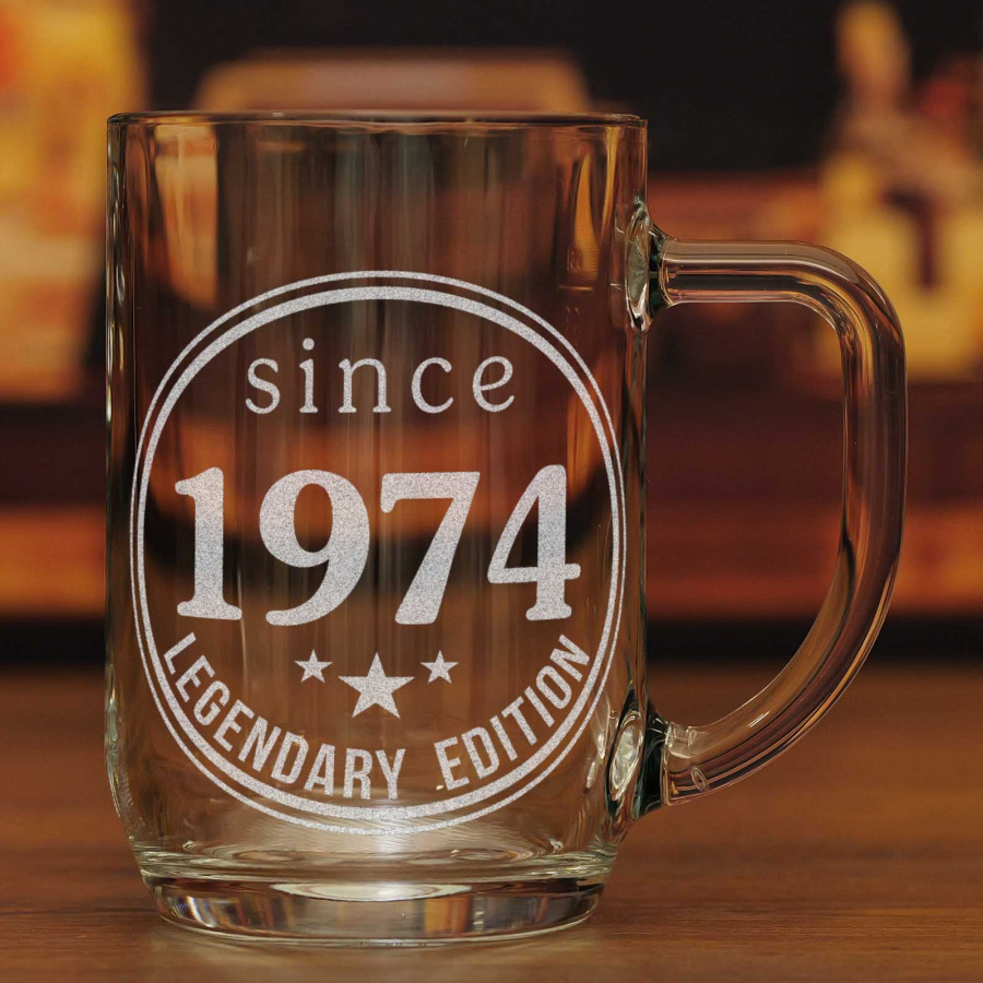 Ideální dárek pro oslavu narozenin: Půllitr s vygravírovaným letopočtem. Na půllitr vám vygravírujeme rok narození oslavence.